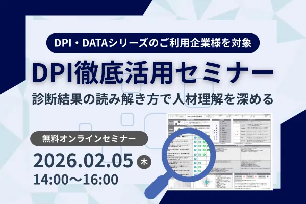 DPIは、「発揮する力」=態度能力を測定することによって、将来の活躍人材を予測します。本セミナーでは、DPIの診断結果を解釈する上で知っておくと人物理解が深まるようなテスト上の知識、診断結果の解釈手法を解説します。人事ご担当者の採用スキル向上、その後の適性検査活用のためにも、この機会にぜひこのセミナーにご参加ください。