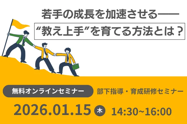 本セミナーでは、部下指導・育成の重責を担う方々が、効果的な指導をおこなうノウハウを得るための、研修教材・ツールを紹介します。これらを有効活用していただくことにより、貴社のOJTをアップデートし、若手社員の早期戦力化・離職防止につなげることを目指します。