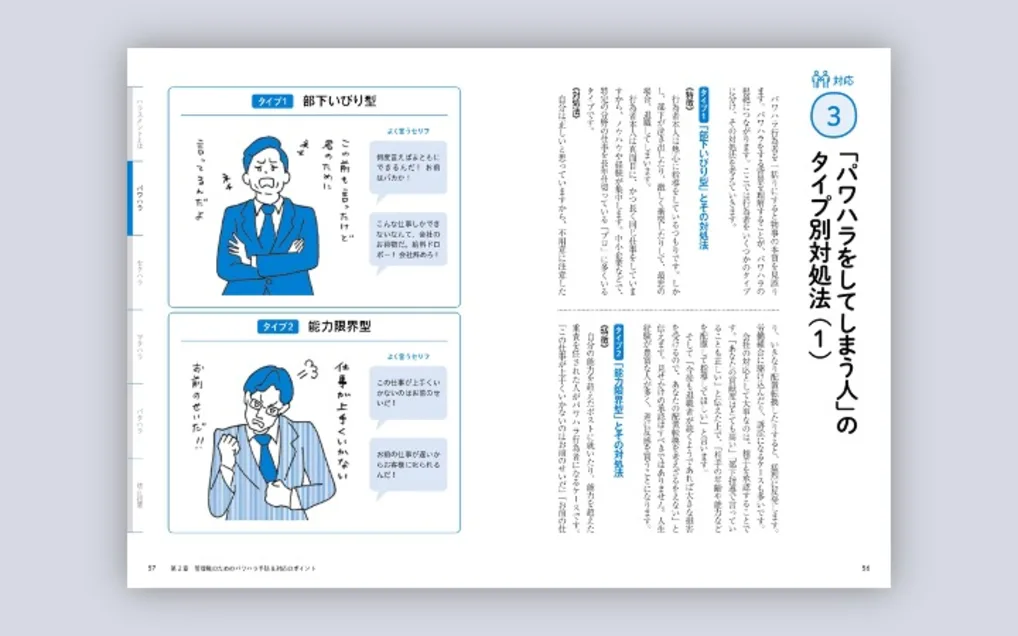 パワハラをしてしまう背景や対処法について、13タイプ別にアドバイスしています。