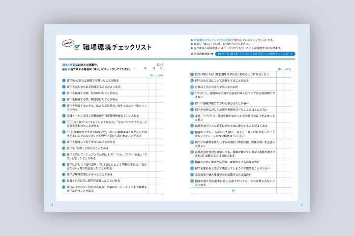 「パワハラ度」がわかる30項目のチェックリストと各項目の説明を読むことで、気をつけるべきポイントがよくわかります。