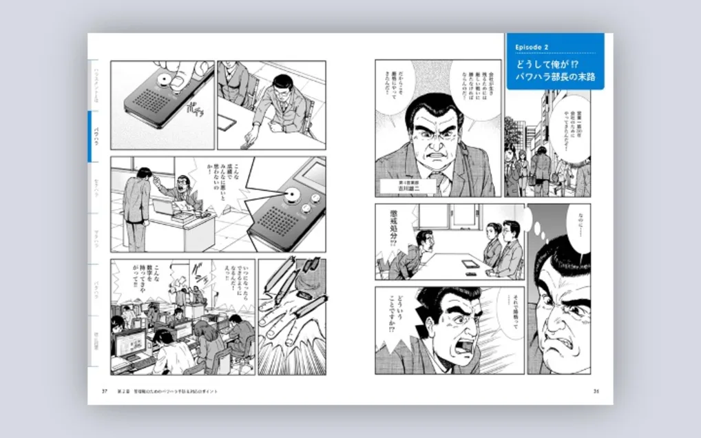 管理職が知っておくべきハラスメントの境界線や効果的な予防・対応について、まんがとイラストでわかりやすく解説した書籍です。